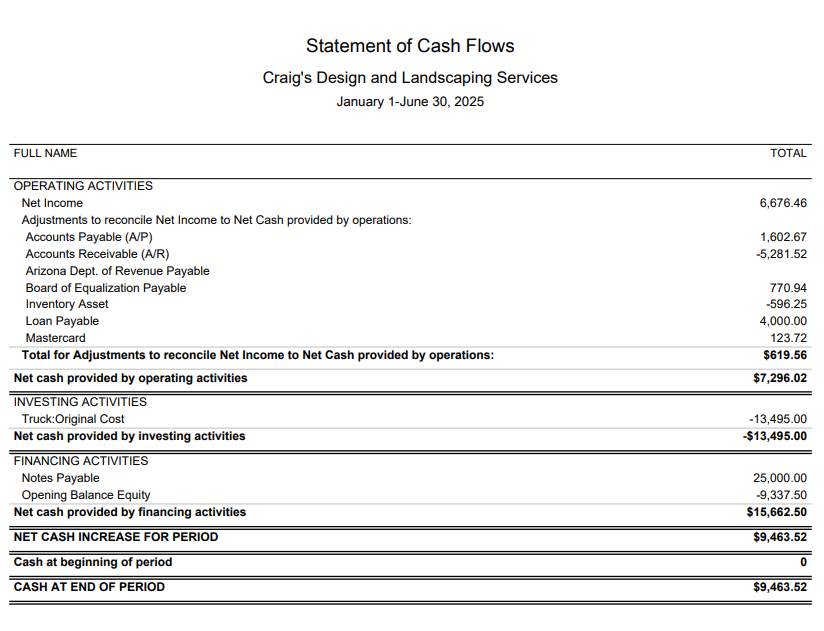 This report is generally the least used by small business owners but is still important. The statement of cash flow shows how cash moves in and out of the business over a specific time. It helps understand how well your business generates cash to pay bills, fund operations and invest in growth.